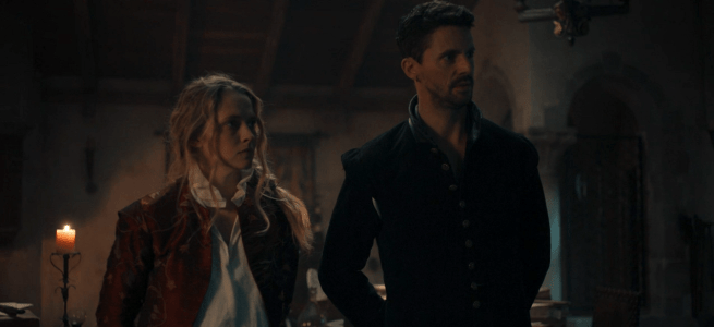 They stop for the night and Pierre helps Diana to the fireside. He tells her she should rest up for what’s ahead. She snaps at him that she understands that no one can hide the truth from Philippe. Then she apologizes, saying she doesn’t want Philippe to come between her and Matthew. Pierre tells her that Matthew will need her to be his “guiding light” at Sept-Tour.