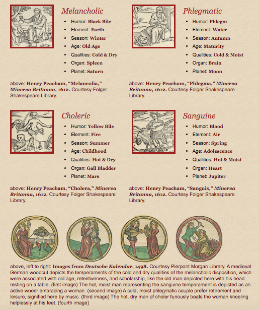 [Humour- temperament type- season- traditional element- typical personality traits]