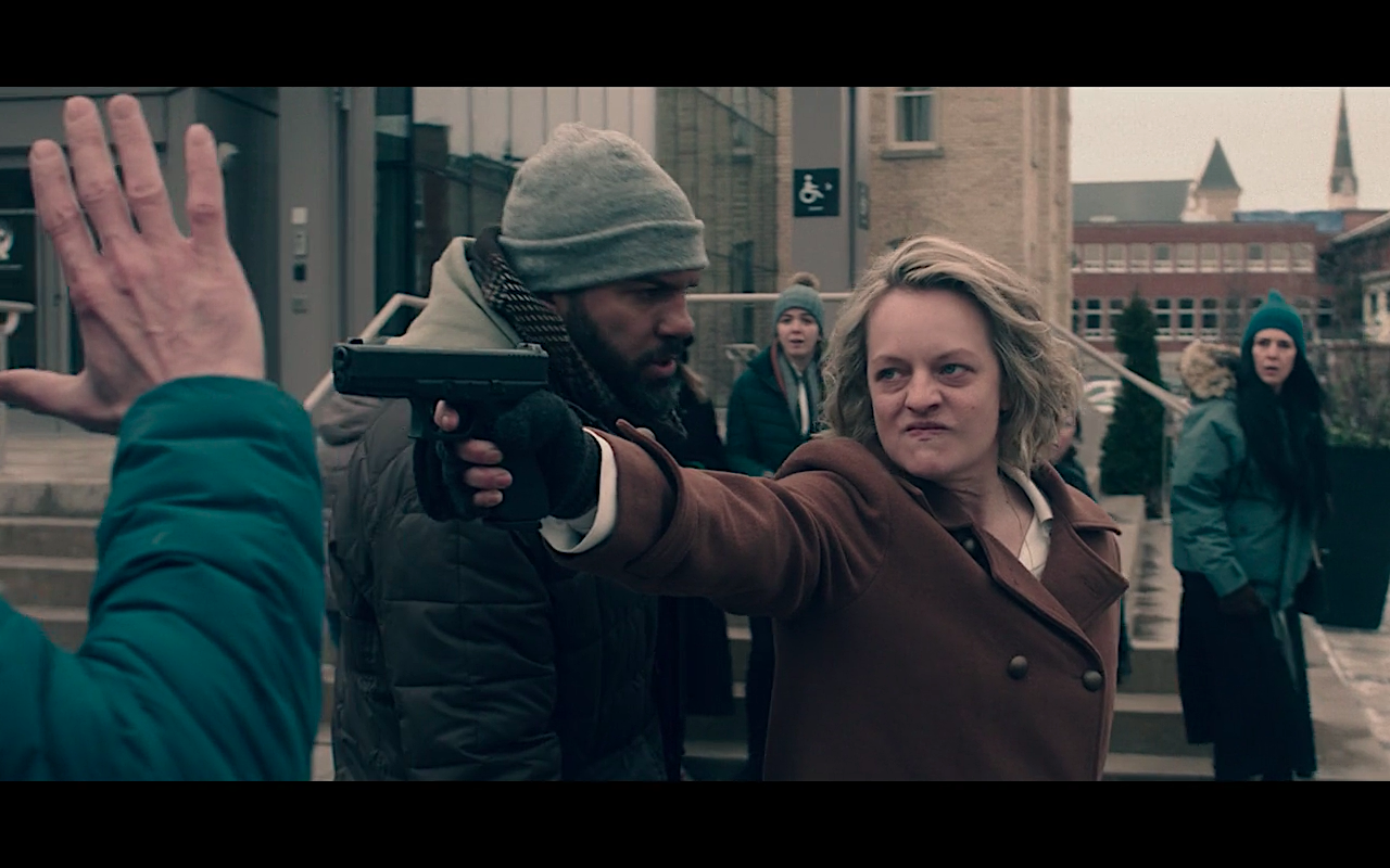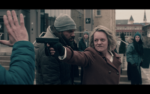 Handmaid’s Tale S5Ep4 June Points Gun at Man