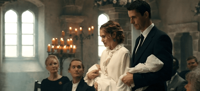 In episode 5, the Bishop-Clairmont family and their allies travel to Matthew’s French ancestral home, Sept-Tours, for the twins’ christening. The gathering also serves as a war council as they consider future plans in their fight to modernize the Congregation’s rules and operations. Benjamin takes witches hostage in Poland in the hope of turning them into his own “Diana”. The Congregation discusses the twins and how to deal with the threat they could pose to the established order.
