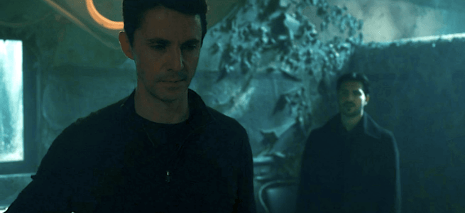 The episode begins with modern day Father Andrew Hubbard (Paul Rhys) kneeling in his church while doing a little light devotional reading. Hubbard recognizes Benjamin Fuchs’ (Jacob Ifan) footsteps as he approaches from behind. He says he told Benjamin never to darken his door again. Benjamin won’t leave until he gets what he came for (not “who,” though he’s referring to a vampire). Andrew says he hasn’t seen the person in question in months. Benjamin is sure he’ll show up sooner or later and orders Andrew to inform him when that happens. As Benjamin walks away, Andrew whispers, “Why can’t you just leave him alone, Benjamin?” Since Benjamin is a vampire, he hears the whisper, but ignores it.